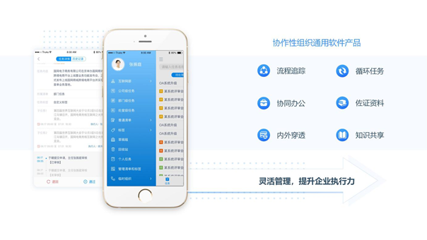 智慧移動辦公是一款企業對工作任務進行全過程管理的智能化系統。實現了從線下辦公向移動辦公方式的轉變。通過手機實時進行任務創建、派發、反饋和審核,解決用戶任務易遺漏、審批難、事務堆積和任務分工不清晰等痛點問題。
