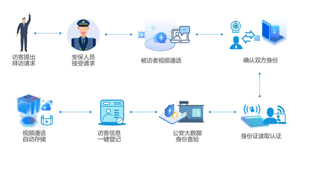 訪客出入管理平臺為企事業單位提供來訪人員的身份信息確認、出入快速登記、信息自動存檔功能。平臺采用身份識別、人臉識別技術,對訪客合法性進行認證,簡化企事業單位訪客出入登記操作;通過視頻通話功能讓被訪者利用個人手機對訪客身份進行確認,杜絕訪客的不請而入,加強企事業單位的安全防護。平臺將訪客到訪時的身份證驗證、人臉比對、視頻通話、信息錄入進行集成,將訪客登記過程、視頻通話內容自動與登記信息關聯并存檔,使出現安全事故時有跡可循、有據可依,快速找到責任人。