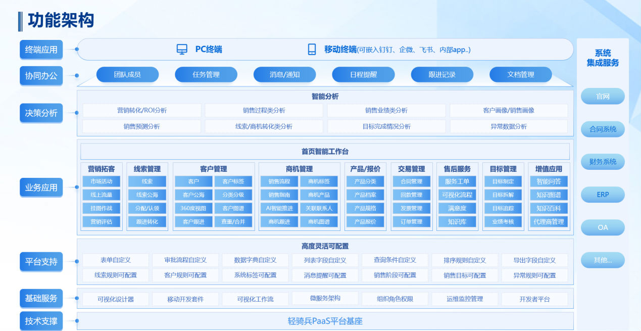 實現了客戶、產品、銷售、回款等關鍵業務信息的交互共享;基于平臺對商機進行統籌管理,通過洞察客戶數據、商機數據,有針對性的進行商機分配和跟進,優化資源配置,提升銷售效率。