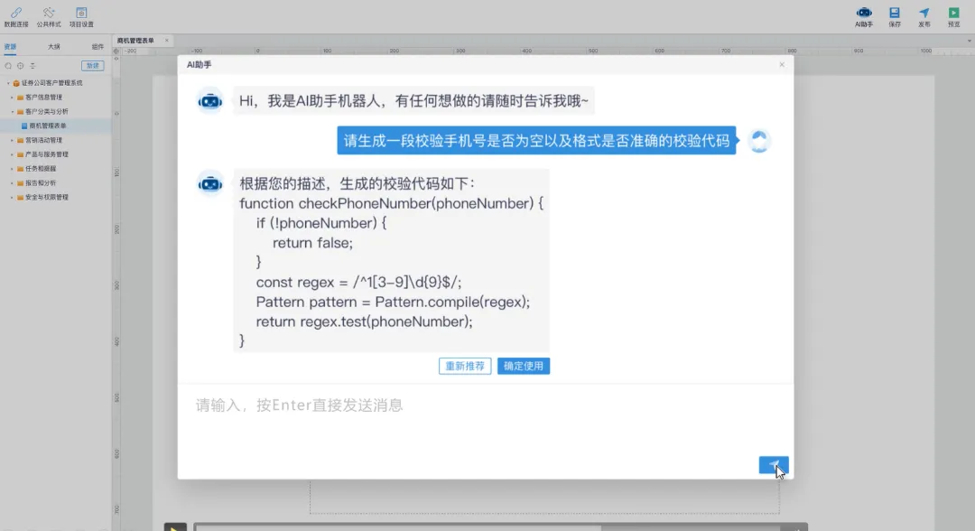 使平臺支持智能指引,自動生成代碼片段、功能模塊、數據模型、表單!
