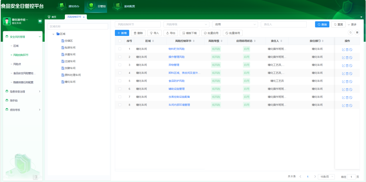 構建標準化日管控風險管控體系,依據區域、風險控制環節、風險點等信息,自動生成安全風險管控清單,實現風險的分級管控,并將責任分解到各層級崗位,確保管控措施得到有效實施。