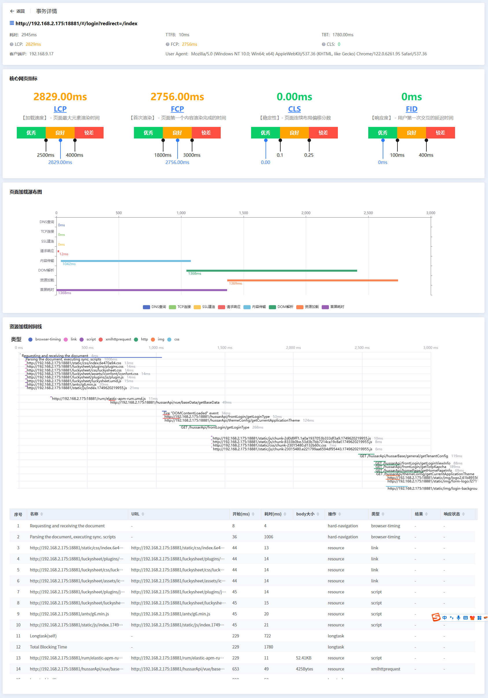 與應用監控(APM)深度融合,構建 “端到端、全鏈路” 監控網絡。從用戶側捕捉頁面加載速度、資源耗時、響應延遲等指標及錯誤信息,結合應用監控數據,快速定位故障節點,提升用戶體驗與系統穩定性。