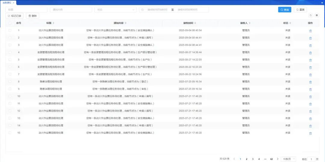 因此,系統(tǒng)要確保相關(guān)人員可實時查看任務(wù)進展,無需反復(fù)詢問進度。作業(yè)狀態(tài)變更、審批通過、隱患整改完成等關(guān)鍵節(jié)點自動推送通知,減少“等通知、跑溝通”。