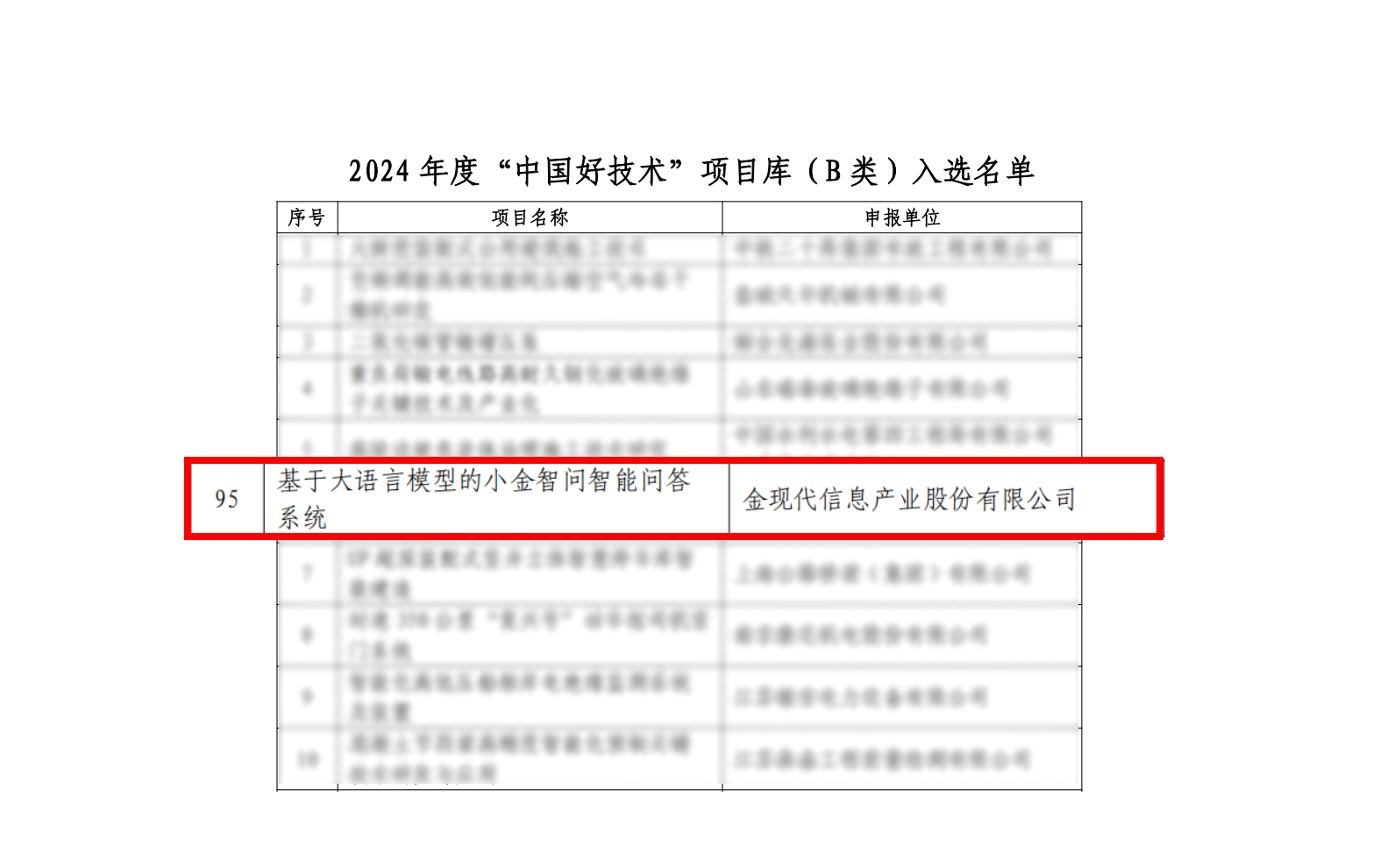 近日,中國生產力促進中心協會公布了2024年度“中國好技術”名單,金現代“基于大語言模型的小金智問智能問答系統”成功入選“中國好技術”項目庫,AI創新與應用能力再獲國家級認可。